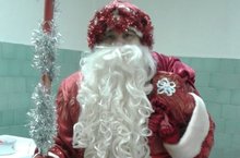 Сегодня в 9.30 утра на территорию детского сада прибыл Дедушка Мороз с большим мешком подарков. Все дети из окон своих групп наблюдали, как он приветствовал их вместе со Снегурочкой.