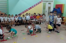 Спортивное развлечение в средних группах подготовила и провела воспитатель Ахмадуллина Л.Г. Дети собирали "витамины" для подопечных Доктора Айболита.