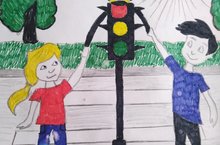 Дети совместно с родителями рисуют дома рисунки и и пополняют знания детей на портале по безопасности дорожного движения "Сакла"