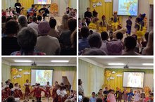Сегодня в нашем детском саду состоялся концерт, посвященный Дню пожилого человека. Наши дети совместно с воспитанниками Детской школы искусств № 6 (Далее- ДШИ) пос.Дербышки поздравили своих дедушек и бабушек. Преподаватель ДШИ, Шакирова Людмила Эриковна и музыкальный руководитель детского сада Ахмиева Зульфия Анваровна составили сценарий, в который органично вписались музыкальные номера ДШИ. Дети старших возрастных групп № 3,6 (воспитатели: Хабибуллина Лейсан Вазиховна, Сибгатуллина Анита Мухамедовна и Курбатина Татьяна Петровна) танцевали, пели песни, участвовали в театральной постановке. Воспитанники ДШИ выступили с хореографическим ансамблем под руководством Егоровой Марины Ильиничны: "Искорки", с "Русским народным плясом", "Карамелька" с танцем "Конфетка", звучали гитара, скрипка, домра, вокальные произведения. Дети и гости получили эстетическое наслаждение от концерта.
