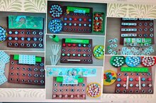 В рамках регионального конкурса "Экофэнтази" коллектив педагогов разработал многофункциональное дидактическое игровое пособие "На поляне знаний" для детей 2-7 лет из бросового материала. Пособие представляет из себя настольное панно с встроенными отверстиями с резьбой (верх от полиэтиленовых бутылок), на которые навинчиваются крышечки (от полиэтиленовых бутылок). Игра также включает в себя и другие бросовые материалы: палочки от мороженого, яйца от киндер-сюрпризов, спичечные коробки. Данное авторское пособие состоит из нескольких дидактических игр по образовательным областям: познавательное развитие- окружающий мир, формирование элементарных математических представлений; речевое развитие- развитие речи, обучение грамоте.