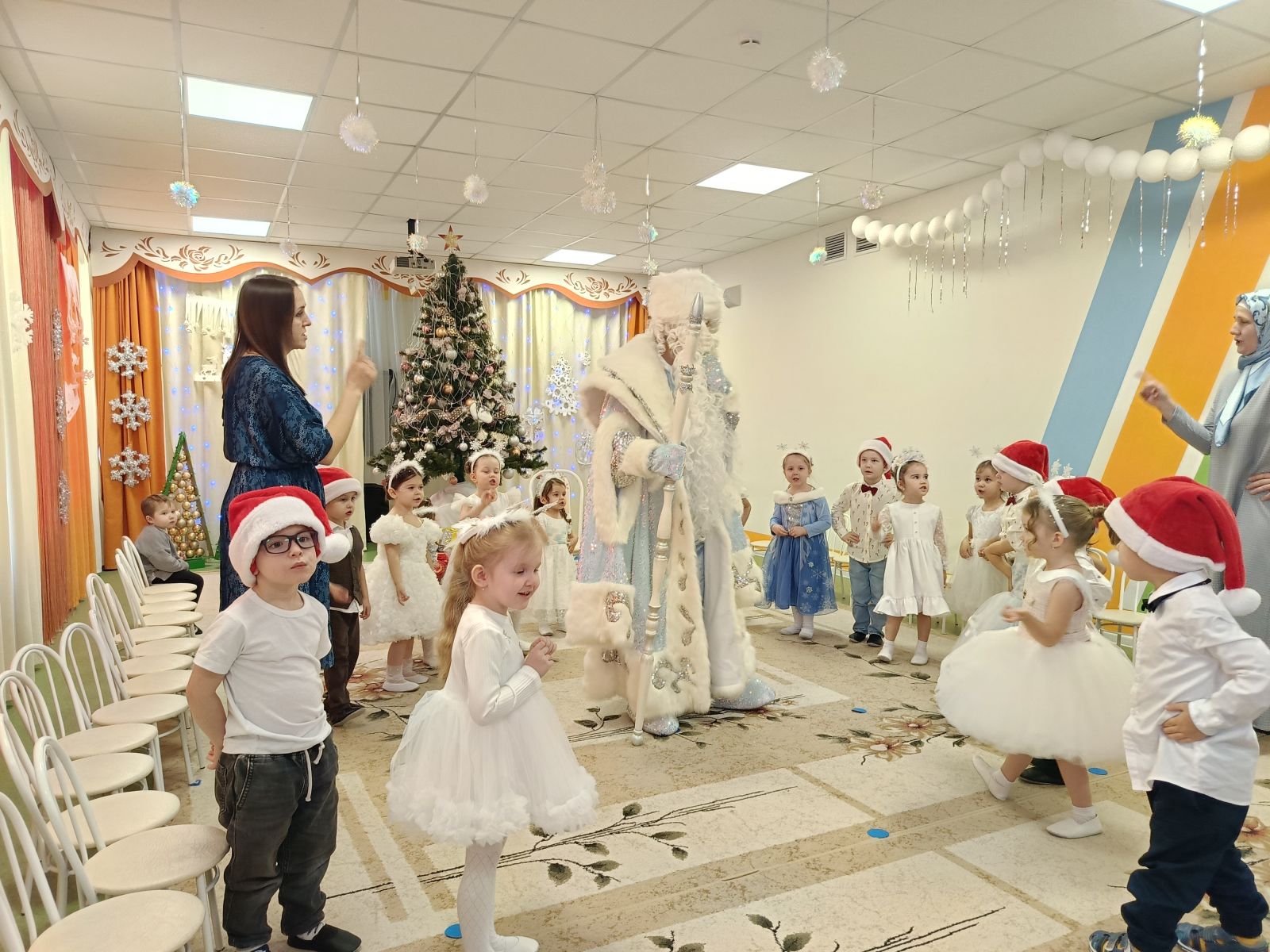 Время новогодних утренников — это время красивой, доброй сказки, которая приходит в каждый детский сад. Новый год - это сказочный праздник, любимый праздник всех детей.Сказочно и волшебно прошли новогодние утренники . Эмоции во время проведения праздника переполняли детей, было много сюрпризов, загадок, встреча со сказочными героями, игры, песни, танцы.Благодарим всех детей, педагогов и родителей! С наступающим Новым годом!