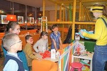 Здесь ребят в кафе ожидал праздник с вкусным обедом из нескольких блюд и развлечениями. Пока одни с радостью резвились в игровой зоне кафе, другие выбирали рисунки для аквагрима. В завершение праздника у ребят появилась возможность посмотреть как из шариков получаются различные фигуры.Спасибо большое за чудесный праздник!!!