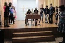 В школе-интернате сегодня прошел конкурс строя и песни, посвященный Дню Защитника Отечества. Первое место судьи присудили сразу двум классам: 9 и 10. Надо отметить, что судьям было очень трудно, так как все команды были подготовлены хорошо и очень старались.