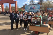 В рамках празднования 73-ей годовщины ученики 8А, 8Б, 9Б классов побывали на районном мероприятии, посвящённом 9 маю, на котором приняли участие в таких акциях, как "Бессмертный Полк" и "Музей в чемодане". В этом году данное мероприятие проходило на стадионе "Ракета".