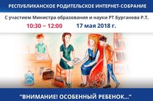 17 мая 2018 года с 10:30 до 12:00 пройдёт Республиканское родительское интернет - собраниеоб особенностях воспитания и обучения детей с ограниченными возможностями здоровья.Online-трансляция на сайте киу.рф -
