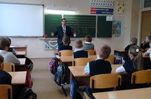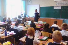 Во встрече участвовали учащиеся начальных классов. Инспектор рассказал ученикам о правилах поведения на дорогах. Вместе с учениками он смоделировал опасные ситуации на дорогах, прокомментировал некоторые пункты ПДД и многое другое.
