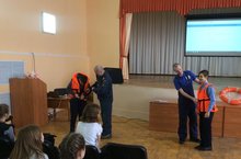 Мероприятие проходило в актовом зале для учащихся 5-8 классов. Озвученная информация была адаптирована для каждой возрастной группы. А затем ребята отвечали на тестовые вопросы сотрудников МЧС и ознакомились с пожарно-спасательным оборудованием.