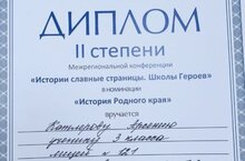 Поздравляем Катлерова Арсения, ученика 3 класса, ставшего призером Межрегиональной конференции "Истории славные страницы. Школы Героев" в номинации "История Родного края" (учитель Зиятдинова Г.Р.)