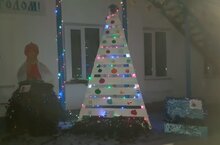 И школьный двор начал по немногу украшаться к Новому году. Несмотря на то , что снега очень мало, совместными усилиями ребят , педагогов и родителей на школьном дворе начали появляться фигуры из сказок П.А.Бажова , сделанные из подручных матерьялов.