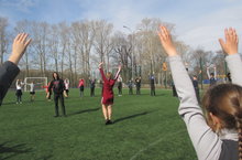 В рамках проведения акции "Здоровое утро с РДШ", утро в школе начинется с зарядки для всех учащихся на свежем воздухе