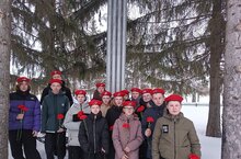 21 Февраля в преддверии Дня Защитника Отечества Юнармейцы и активисты Движения Первых нашей школы провели акцию "Цветок памяти"(возложение красной гвоздики к обелиску воинам ВОВ)