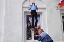 1)проведена эвакуация с эмитированным очагом возгорания на лестнице второго этажа. Все сработали организованно-многих эвакуировали со второго этажа по верёвочной лестнице.