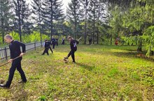 Юнармейцы школы и активисты «Движения первых» продолжают приводить в порядок прилегающую к обелиску территорию.