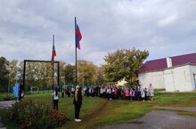 Начало учебной недели.Традиционное поднятие государственных флагов РФ и РТ