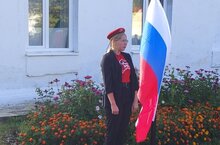 Флаги поднимали- отличница школы Файзрахманова Айгуль, и одна из лучших спортсменок школы Ямщикова София. -