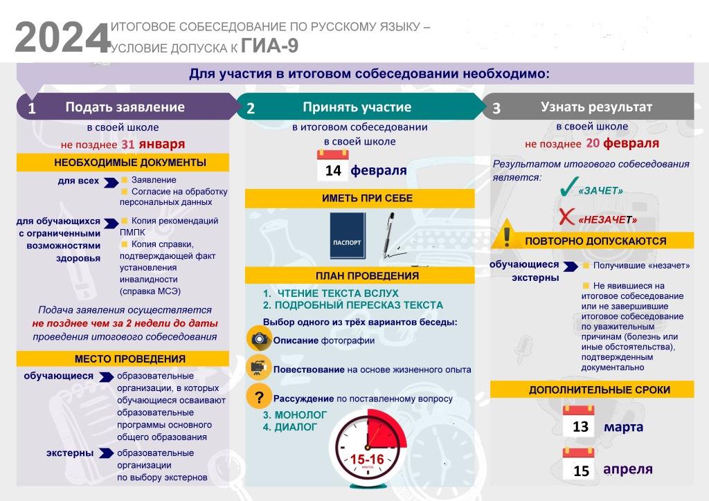 Расписание проведения итогового собеседования по русскому языку в 2024 году