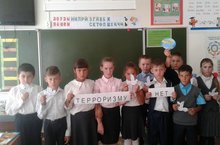 Мероприятия в рамках Дня солидарности в борьбе с терроризмом. 02.09.2017 2 сентября в нашей школе были организованы мероприятия в рамках Дня солидарности в борьбе с терроризмом. Для учащихся 2-9 классов были проведены классные часы, в ходе которых вспоминали о трагедии в Беслане в день Знаний. Говорили о том, что только дружба между людьми приведет к миру на земле. В 3 а классе в конце урока учащиеся сделали голубей и написали свои пожелания ко всем людям земли. Для учащихся 10-11классов в кинотеатре «Октябрь» организован фильм. В течение дня проведена акция «Мир - миру, скажи терроризму нет!», на своих ладошках дети писали своё отношение к миру и свою позицию по отношению к террору.