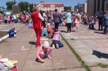 Был организован конкурс рисунков на асфальте. Где дети нарисовали свою семью, мирное голубое небо, тёплое красное солнышко. Свои рисунки дети посвятили счастливому детству, в каждом рисунке было солнце.