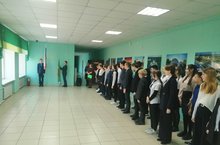 Торжественное поднятие флагов. 23.01.2023 По традиции утро понедельника начинается с торжественных мероприятий: прослушивание гимнов Российской Федерации, Республики Татарстан и поднятие флагов Российской Федерации, Республики Татарстан. В церемонии поднятия флагов приняли учащиеся 7а, 8а и 8б классы, Юнармейцы школы, директор и педагоги школы. Право поднять Государственный флаг Российской Федерации представилось Юнармейцу Михайлову Савве, флаг Республики Татарстан – Юнармейцу Кочеткову Ярославу. Затем ребята прошли в школу, где для них учебная неделя началась с классного часа «Разговор о важном».