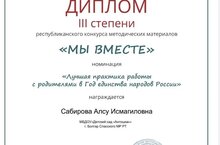 Наш педагог Сабирова Алсу Исмагилловна получила диплом lll степени.