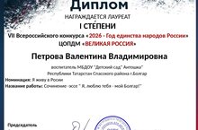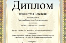 Наш педагог Петрова Валентина Владимировна получила диплом за 1 место!
