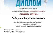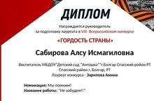 Наш педагог Сабирова Алсу Исмагилловна получила диплом!