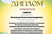 Наш педагог Баскакова Елена Александровна получила диплом за 1 место!