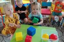 Сегодня наши малыши учились различать предметы по форме (кубик, шарик). А также различать понятие«один» «много» предметов. Педагог Петрова Валентина Владимировна.