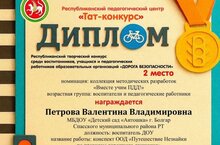 Наш педагог Петрова Валентина Владимировна получила диплом за 2 место за участие в Республиканском конкурсе по ПДД.