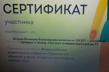 Наш педагог Петрова Валентина Владимировна приняла участие во Всероссийском родительском собрании " Трудности в обучении детей. Открытый разговор на важную тему" и получила сертификат участника.