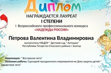 Наш педагог Петрова Валентина Владимировна получила диплом 1 степени.