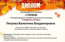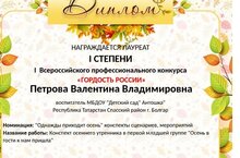 Наш педагог Петрова Валентина Владимировна получила диплом 1 степени.