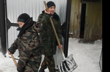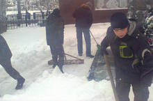Уборка территории памятника воинам, павшим в годы ВОВ, от снега