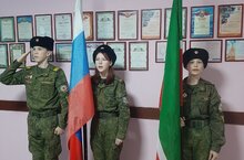 Почетное право исполнять гимны под флагами предоставлено кадетвм 9 класса Гинатуллиной Кристине и Рак Виктории. -