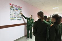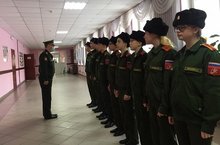 В нашей школе, в начале каждой четверти, директор школы Челышев Д.В. проводит строевой смотр класса (кадет). Проверяет и оценивает внешний вид кадет (чистота и опрятность формы), стрижку, наличие у кадета средств личной гигиены (расчёска и носовой платок) и ремонтных средств (швейные иглы и нитки).