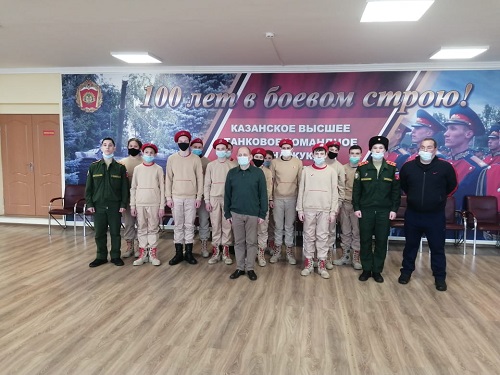 Опубликовано: 18.02.202118.02.2021 состоялся День открытых дверей в Казанском высшем танковом командном ордена Жукова Краснознаменном училище. Данное мероприятие посетили наши кадеты: девятиклассники Шарафетдинов Булат и Панфилов Андрей.