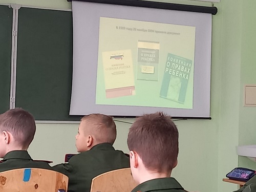 Опубликовано: 15.02.2022Классным руководителем 6 класса Кисловой И. Н. был проведён классный час на тему: "Право быть ребёнком". Ирина Николаевна познакомила кадет с "Конвенцией по правам ребёнка". Ребята ознакомились со статьями данного документа, узнали на что они имеют право, какие несут обязанности, научились применять их к жизни, приняв участие в литературно-правовой викторине. Кадеты были очень заинтересованны данной темой. Каждый из них получил брошюру с выдержками из Конвенции и сделали вывод, что нет прав без обязанностей и нет обязанностей без прав.