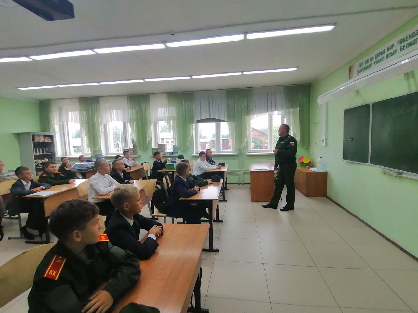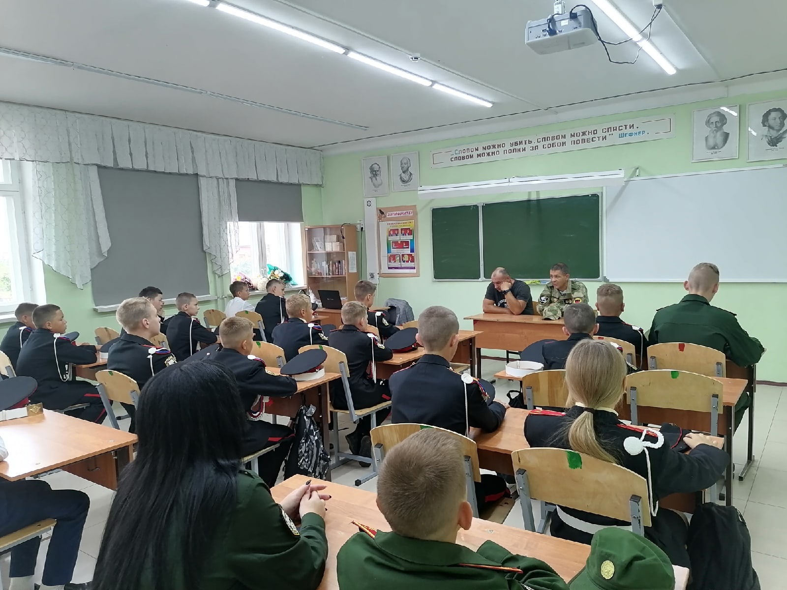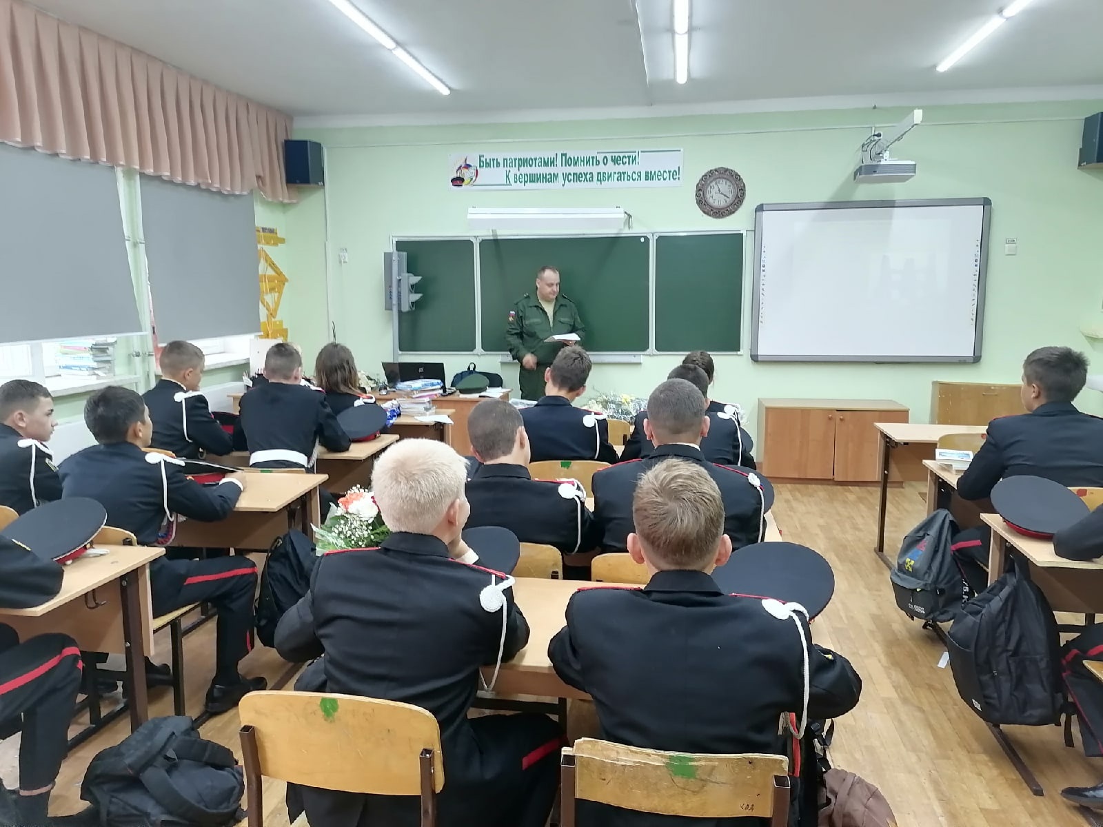 Опубликовано: 01.09.2022Сегодня в классах прошли классные часы. Традиционно в нашей школе это Уроки мужества. Были приглашённые гости. А к нашим 5-классникам пришёл наш директор Дмитрий Владимирович, который рассказал о славных традициях кадет..