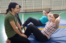 Педагоги сдавали подтягивание, отжимание, подъем туловища из положения лежа, наклон туловища на гибкость, прыжок в длину с места.
