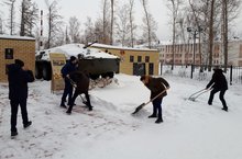 Несмотря на мороз и порывистый ветер, школьники упорно сражались с белоснежными сугробами. -