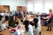Три команды боролись за звание "Лучший знаток истории России". Учитель истории Потапова С.А. подготовила игру в три блока: "Древняя Русь", "Российская империя" и "СССР".