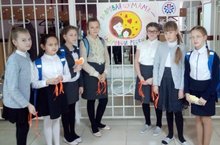 С самого утра они встречали учащихся и педагогов в фойе школы, дарили им сердечки с добрыми пожеланиями, повязывали «оранжевые ленточки». Оранжевый цвет - символ солнца, плодородия, радости, способствует продолжению рода и творческой активности.