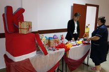 В связи с этим школьная бизнес компания выставила свой товар на ярмарку, предлагали прихватки, атрибуты к праздничному столу, мягкие подушки в виде букв, новогодний чехол на стул и другие товары.