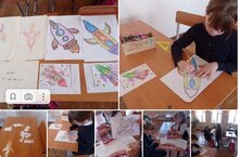 Педагог Пензина М.В. рассказала о Дне космонавтики, о первом полете в космос, который совершил Ю.Гагарин, затем учителем было предложено нарисовать ракету.