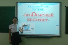В 6 а классе был организован урок безопасности в сети Интернет с просмотром презентаций и видеофильма. Ученики обсуждали вопрос коммуникации в сети Интернет, особенности работы с информацией в сети и некоторые технические аспекты работы в сети, угрозы, которые исходят из сети Интернета, угрожая человеку, персональному компьютеру. Особое внимание учащихся обращено на классификацию вредоносных информационных ресурсов.