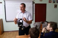 Учитель ОБЖ Мынов В.А. рассказал учащимся об истории создания и развития гражданской обороны, как себя вести в случае подачи сигнала о ЧС, напомнил ребятам на какие номера нужно звонить в экстренном случае. Ребята познакомились со средствами индивидуальной защиты.