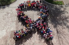 Флэш-моб, лидеры ДШД выстроили живую фигуру красной ленты, символ осознания важности проблемы СПИДа.