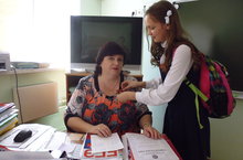 На фото 8 а класс у Тухватуллиной Г. К. ветерана педагогического труда.