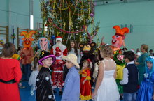 Школа готова к празднованию нового 2016 года, который пройдет под символом красной обезьяны. В рекреациях висят украшения, в коридорах стоят ёлки, но главная красавица находится в спортивном зале и ждёт возле себя новогодний хоровод, который пройдёт уже завтра для начальных классов.